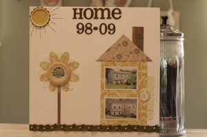 I was then challenged to utilize vintage milk caps. I decided to use one for the center of my gigantic flower or perhaps it’s a tree? Cute non-the-less! Also used one flipped upside down as my sun. Had to utilize vellum on the flower/tree as well thanks to Keisha Campbell’s gorgeous use of this product (love her design)!