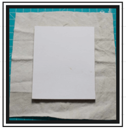 Lay cork/matboard piece on top of the wrong side (if there is a wrong side) of fabric remnant. Trim fabric to