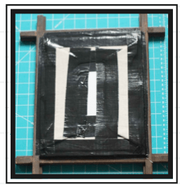 Add covered piece to the opening in the frame and cover the backside with duct tape to secure.