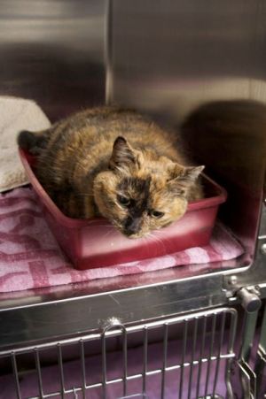 So while she was hospitalized I’d go over daily to feed and spend time with her to try and keep her spirits up.  I couldn’t resist taking a picture of her in her hospital bed of which consisted of one mauroon litter box filled with oh so scratchy litter.  Indeed a comfortable bed don’t cha’s think?  HA!  On her 2nd night I left her own bed from home of which I found her sleeping on the very next morning.  That made me feel that she liked the smell and reminder of home.  Love you Woobie (my little pony) and we’re so glad you’re feeling better.