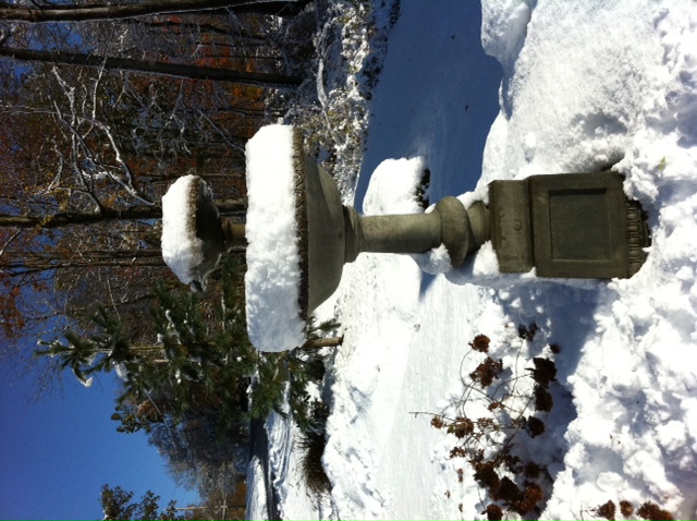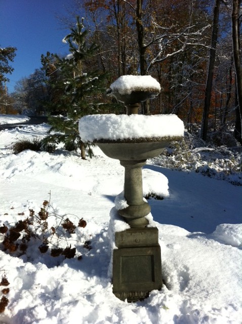 Couldn’t resist this picture of our water fountain.  How often do you see a running water fountain covered in snow?  You can’t really tell in the picture but it’s running!  We’d normally winterize her around Thanksgiving which usually works out until mother nature’s deranged sense of humor spills her guts before Halloween!